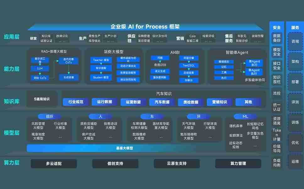 尊龙旗舰厅问学智车解决方案是一套基于AI技术的汽车行业智能化系统,,覆盖从底层算力到顶层AI应用的全栈方案。。。。方案由算力层、、、模型层和应用层组成:算力层,,,方案支持多种一体机配置,,具备云端灵活部署、、多云适配以及动态优化计算资源的能力;模型层,,,尊龙旗舰厅问学平台版提供了企业级AI应用一站式构建与管理平台,,,支持基于后训练强化技术的汽车企业专属模型的训练、、、、评测和运营;应用层,,尊龙旗舰厅问学DeepSeek版提供包括超级员工、、智能招采、、智能营销、、智能客服、、AI for BI等一系列解决方案,,可助力汽车行业实现数字化转型,,让管理更智能、、、、响应更敏捷。。。。
